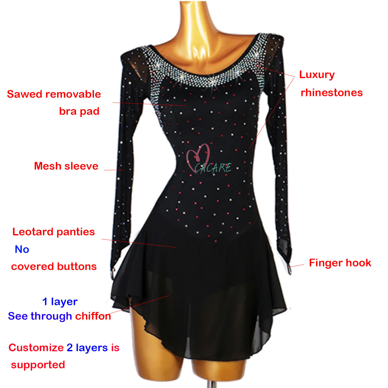 CACARE Jersey Figure Skating Dress Women Girls Competition Ice Hockey Skating Dresses Latin Dance Costumes